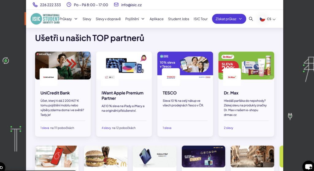 | Speciální akce | Různé | Limitované | Sekce ISIC slevy |