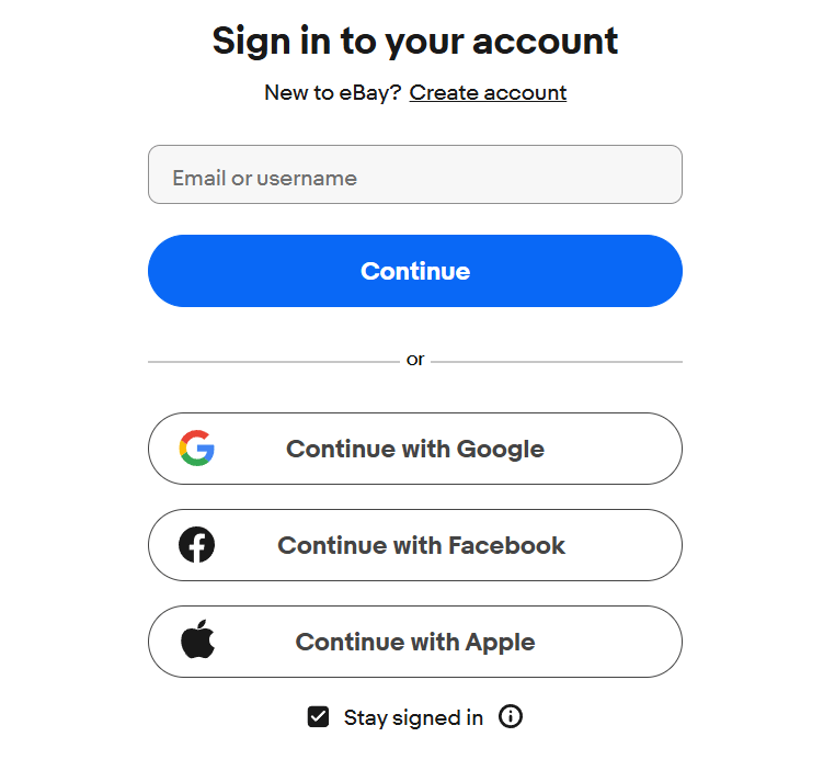 eBay umožňuje i přihlášení skrze účet na Facebooku, Google nebo Apple. To se hodí zejména pro zákazníky, kteří si nechtějí vytvářet další uživatelský účet a přesto chtějí využívat výhody, které s sebou eBay registrace nese.