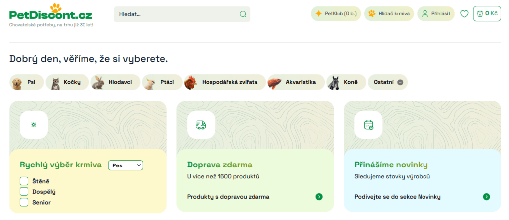 • Věrnostní program: PetKlub nabízí slevy pro pravidelné zákazníky.