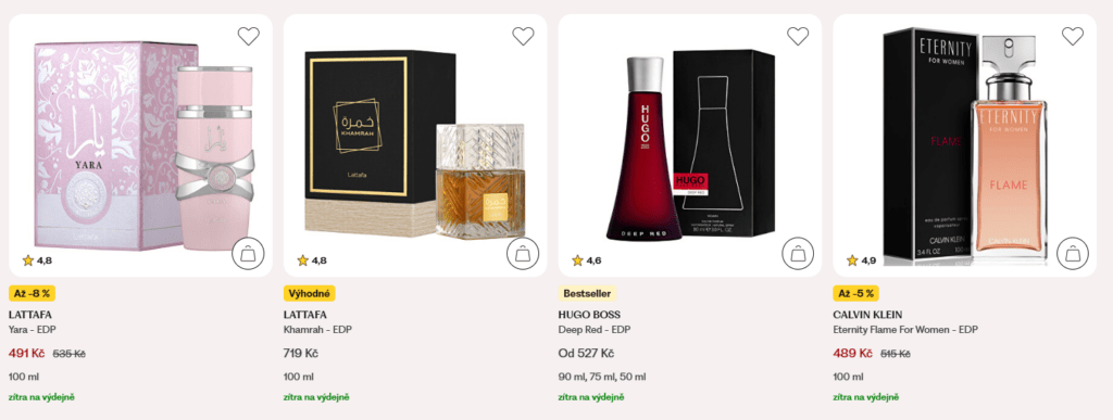 Vivantis kromě jiného nabízí tisíce parfémů od levných až po luxusní značky. Nabídka je velmi široká – od klasických značek po niche vůně. Na skladě mají často desítky tisíc produktů a mnoho z nich odesílají ihned.